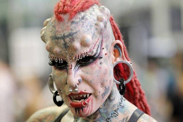 Maria Jose Cristerna yang dikenal sebagai Vampire perempuan asal Mexico, mantan pengacara dan ibu dari 4 orang anak ini memegang rekor dunia untuk tubuh wanita yang paling banyak di modifikasi, dia mulai dengan memasukan implan di bagian dahi dan dada nya di tambah dengan berbagai tindikan.